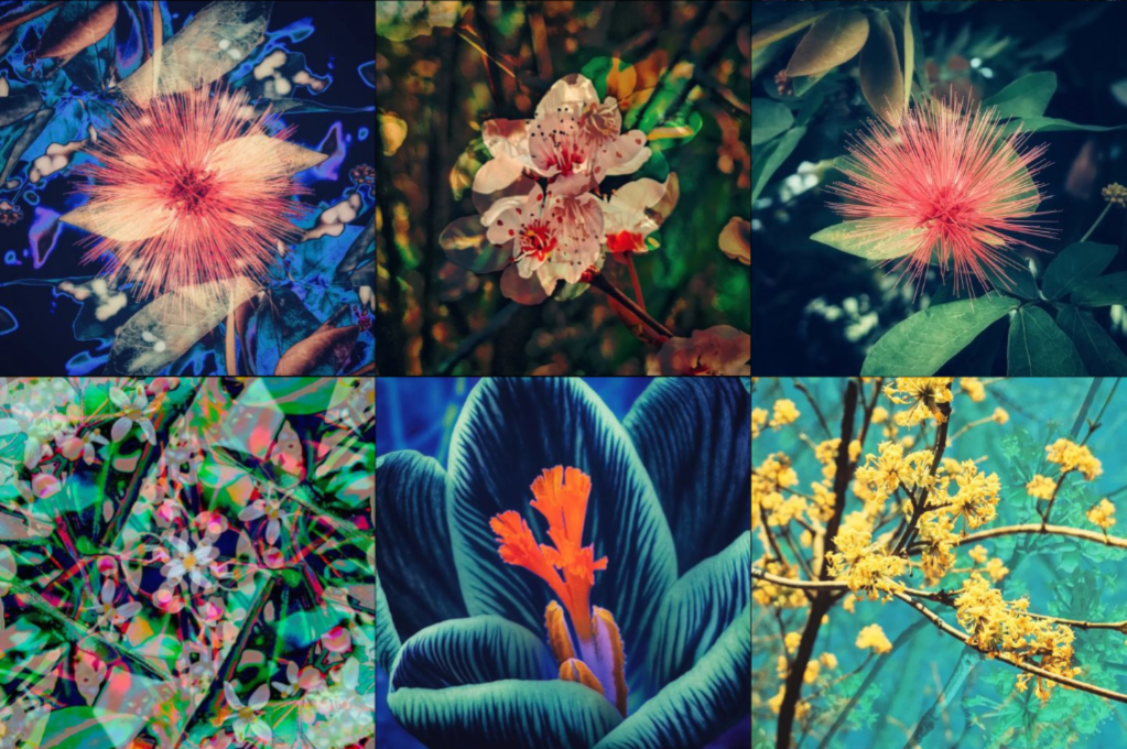I generally use organic shapes and textures of flowers and plants that I encounter on walks through nature. I collaborate with these forms to create saturated mystical dreamscapes. When I arrive at the final form of an image, it often feels like a representation of something very pure, deep within me, of this, and, of other worlds.